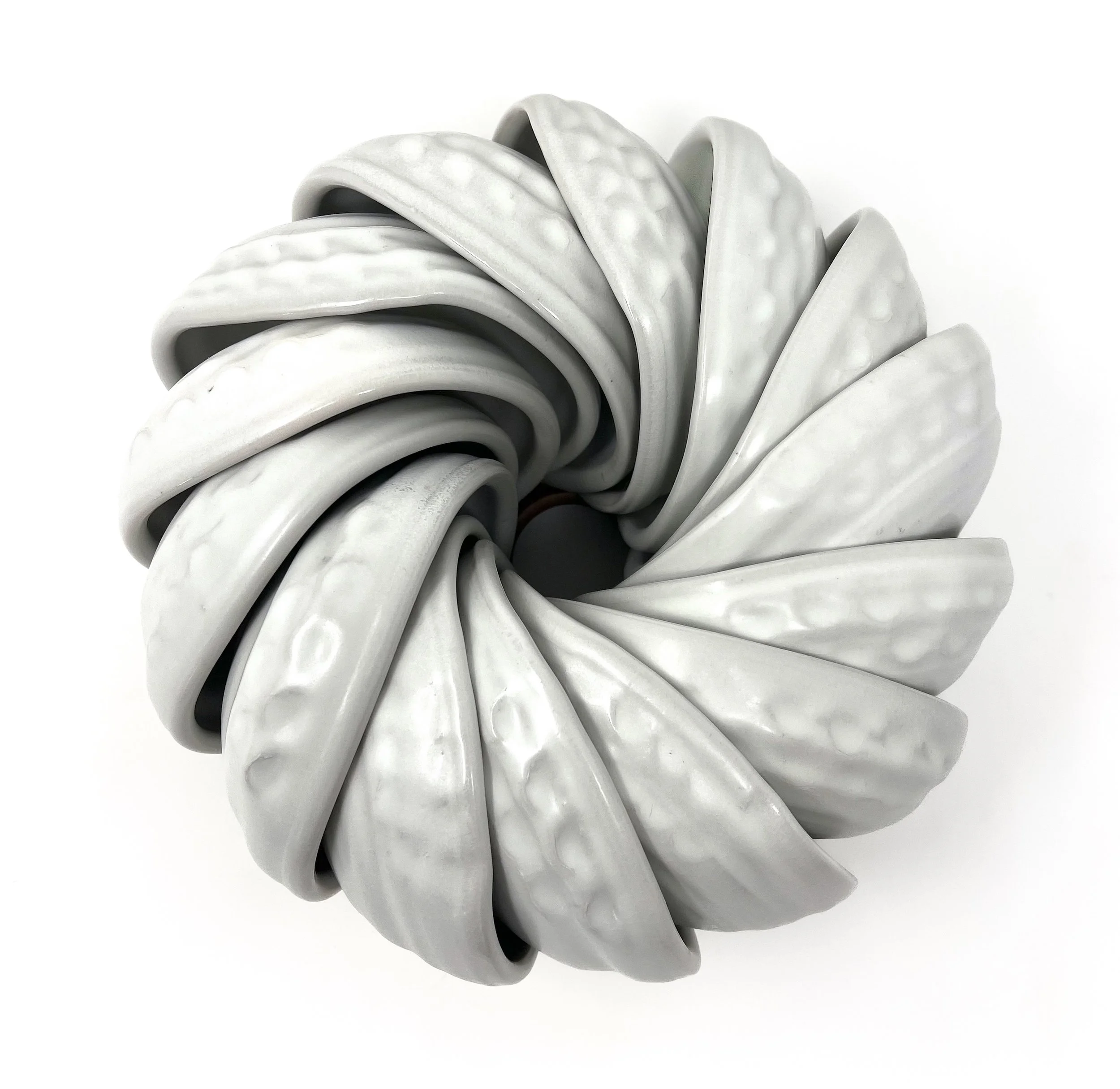 I work within a long history of ceramic traditions, searching for beauty and freshness, structure and meaning. I often draw inspiration from details in nature, the form of the sky seen from a solitary hilltop, the tension in a peony blossom squeezing outward during a warm week in late June. I love to work physically hard, long hours in the studio. Repetition and rhythm in my process are how I search for subtleties, forms, surfaces, patterns. I am fascinated by the potential when related elements stack and arrange, becoming something greater than a sum-total of parts. A series of soup bowls nesting together evokes an emerging flower, yet transforms into a stage for breaking bread with loved ones, then nests back to a flower, poised and alert for their next experience.